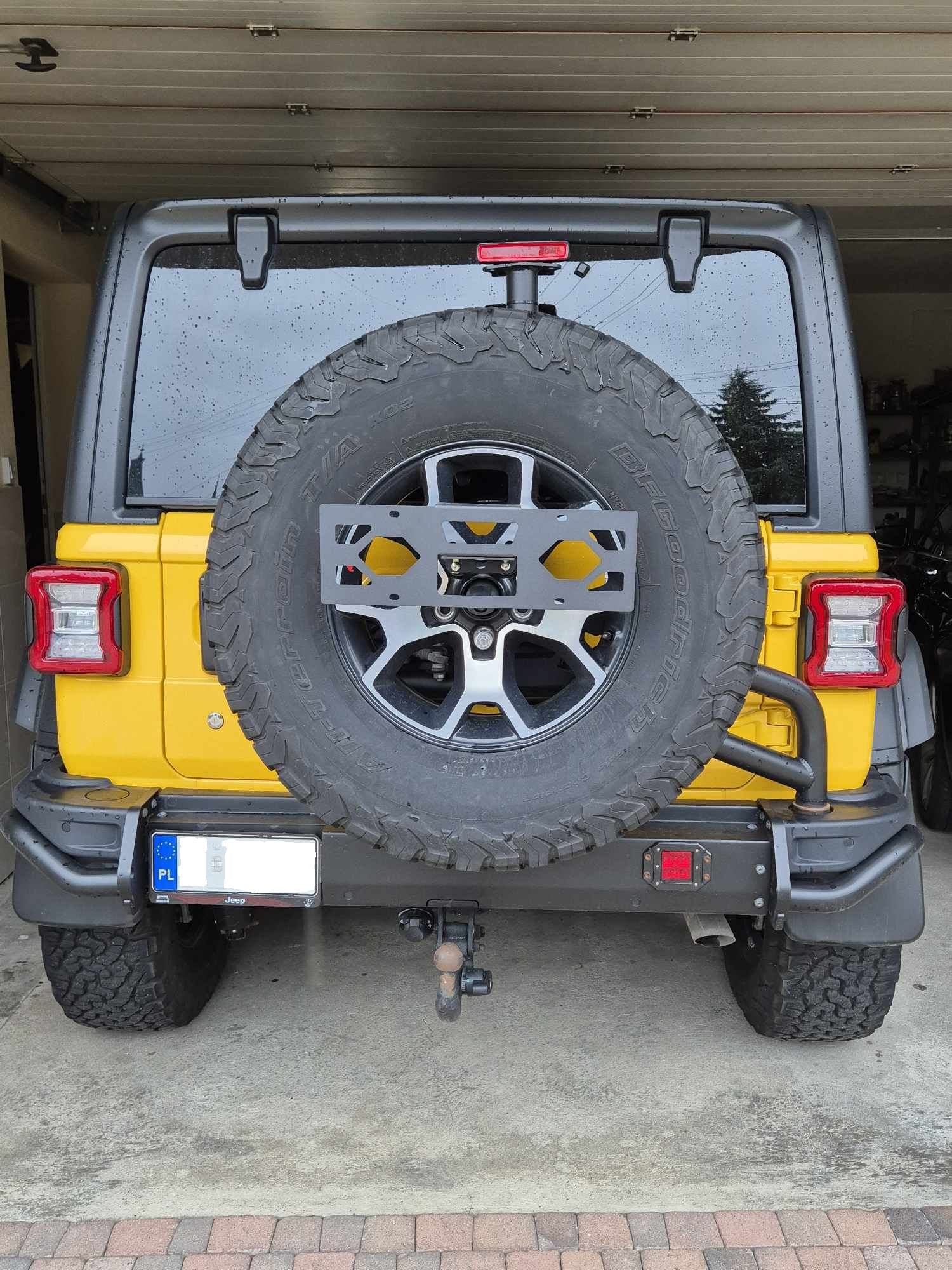 Relokacja tylnej tablicy rejestracyjnej na koło zapasowe JL-AEV-LP
