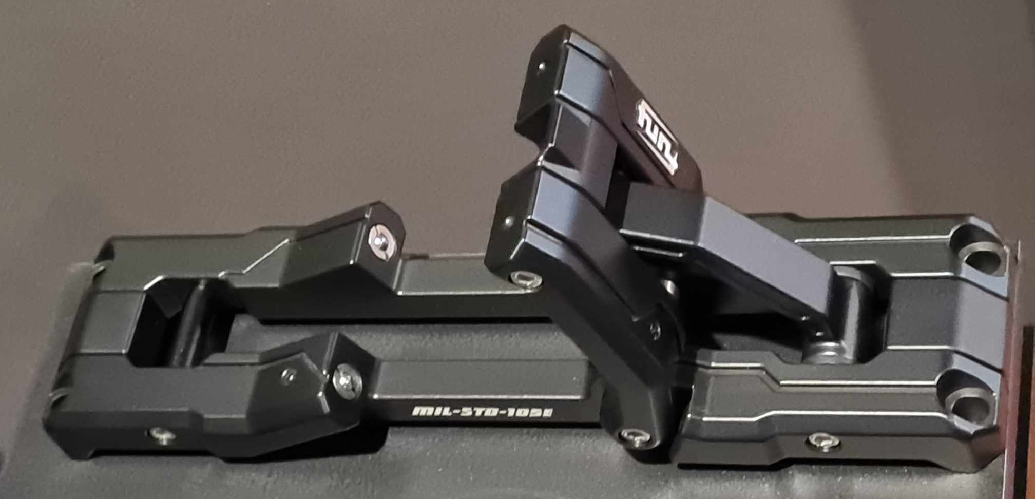 Kolekcja FURY – aluminiowy, czarny, składany stopień/podnóżek do montażu na zawiasy drzwi